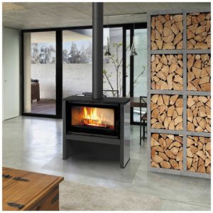 Stufa a legna in stile moderno-contemporaneo e conforme agli standard Ecodesign. Il suo design è ideale per tutti i tipi di ambienti (850x468x409 mm). Ha un volume di riscaldamento di 230 m3 e una potenza termica di 8 KW. Offre la possibilità di utilizzare tronchi fino a 40 cm nel suo focolare, che aggiunge funzionalità con un tocco caldo e accogliente. Porta in vetro serigrafato e tripla vista sul fuoco. Ha una presa d’aria esterna e il suo interno è rivestito di vermiculite, che consente un maggiore rendimento.