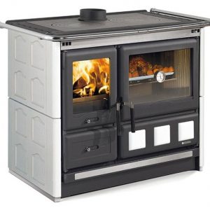 La cucina a legna Mamy 7013714 racchiude un focolare ed un forno da 55 litri in poco spazio. Ha un robusto rivestimento esterno in ghisa ed una potenza termica di 8,7 kw che permettono di scaldare fino a 249 m3.