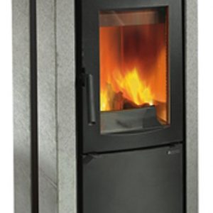 Stufa a legna in stile moderno-contemporaneo e conforme agli standard Ecodesign. Il suo design è ideale per tutti i tipi di ambienti (1048x605x490 mm). Ha un volume di riscaldamento di 220 m3 e una potenza termica di 8,7 kW. Offre la possibilità di utilizzare tronchi fino a 50 cm nel suo focolare, che aggiunge funzionalità con un tocco caldo e accogliente. Ha una presa d’aria esterna. Il suo interno è rivestito di vermiculite, che consente un maggiore rendimento. Esterno rivestito in pietra naturale