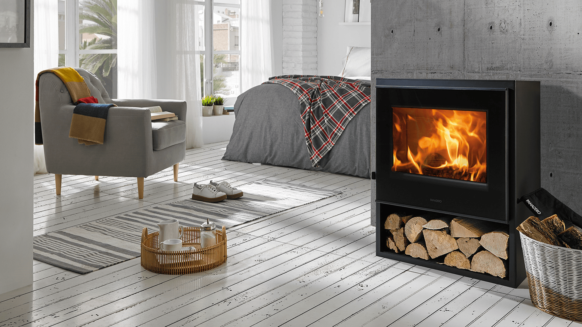Stufa a legna in stile moderno-contemporaneo e conforme agli standard Ecodesign. Il suo design è ideale per ambienti di piccole e medie dimensioni (695x640x393 mm). Ha un volume di riscaldamento di 210 m3 e una potenza termica di 5,9 KW. Offre la possibilità di utilizzare tronchi fino a 50 cm nel suo focolare, che aggiunge funzionalità con un tocco di eleganza. Porta in vetro serigrafato e tripla vista sul fuoco. Ha una presa d’aria esterna e il suo interno è rivestito di vermiculite, che consente un maggiore rendimento.